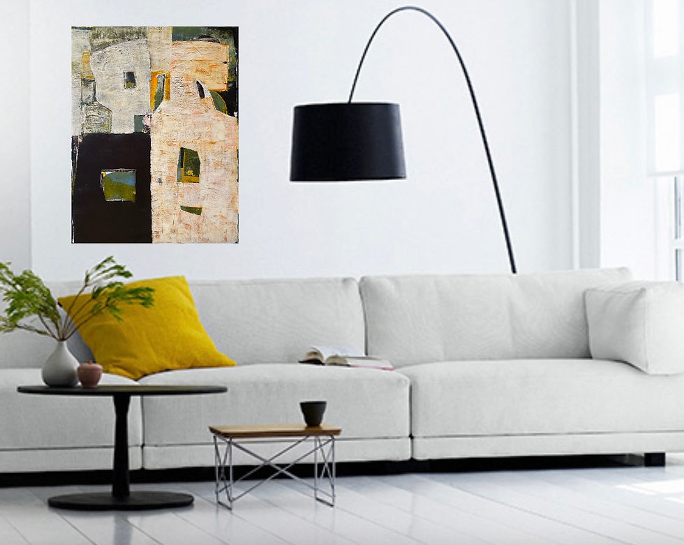 105 x 125 cm Kr 23 100 inkl.kunstavgift Utstilt hos Gallerii på Tønsberg torv Blandingsteknikk på linlerret
